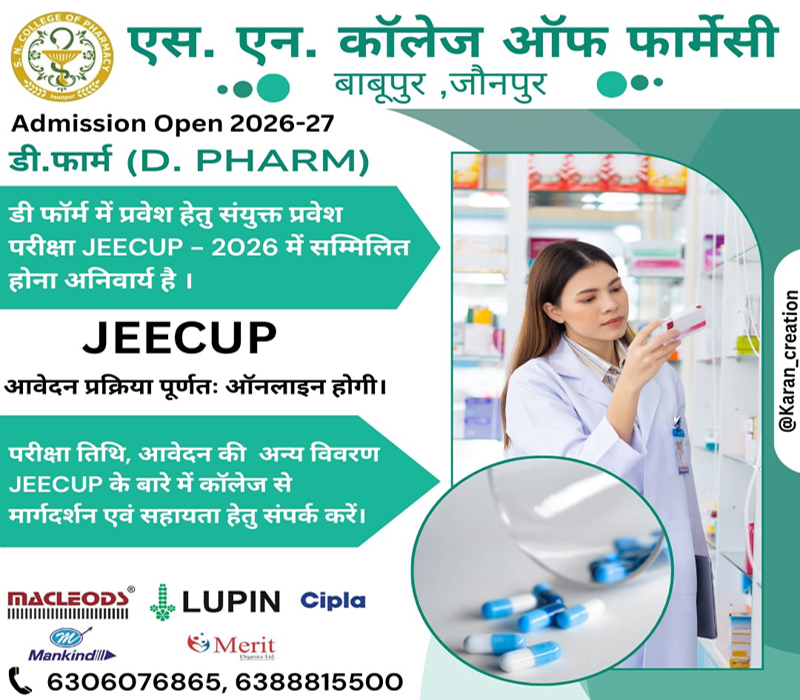 My experience at [S.N. COLLEGE OF PHARMACY BABUPUR,JAUNPUR] has been absolutely life-changing. The college offered not only academic knowledge but also taught me professionalism, ethics, and compassion qualities that are crucial in the practice of pharmacy. The instructors were extremely supportive, knowledgeable, and always willing to put extra effort into helping students excel. From practical lab training to clinical experience, each aspect of the curriculum was tailored to equip us for practical challenges. I am proud to be an alumnus of this institution and thankful for the firm foundation it has provided me for my professional journey ahead.